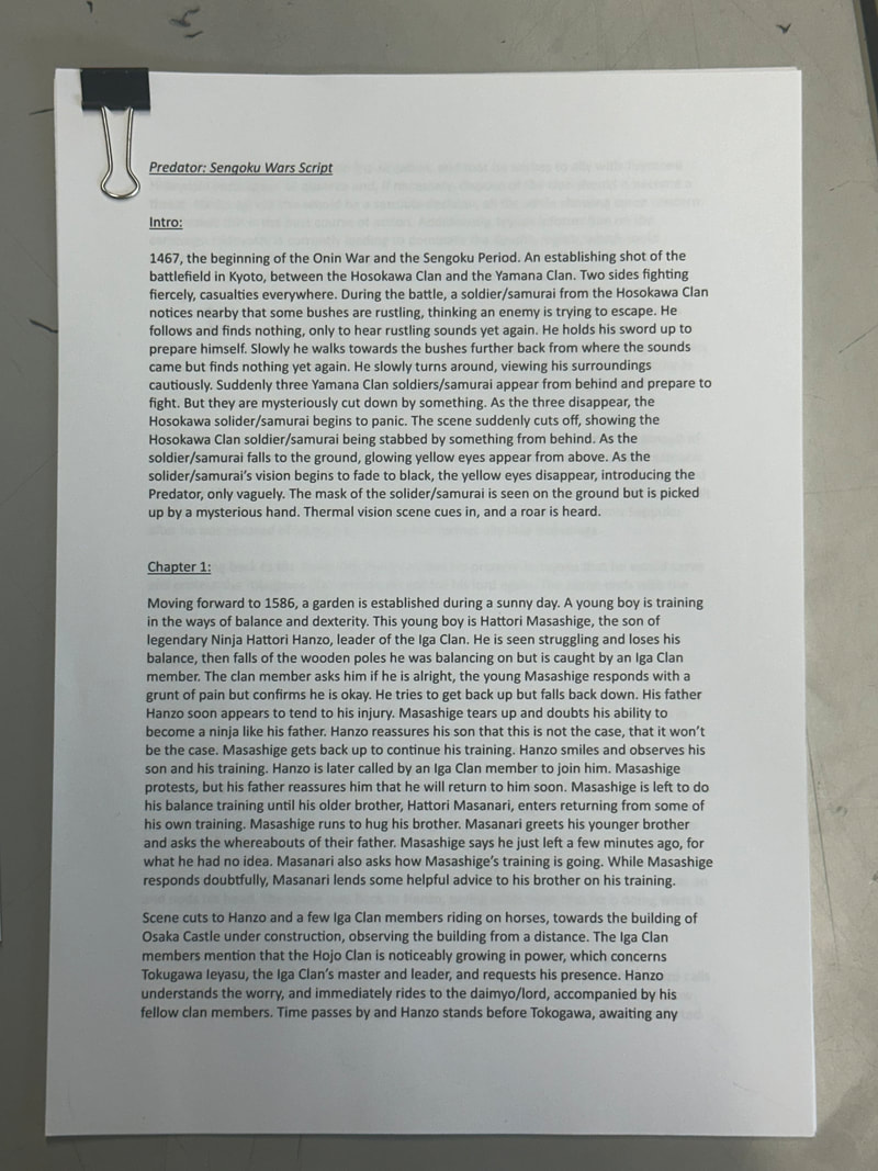 This page is meant to introduce the Predator, however it won't provide its appearance through detail, only through its silhouette and first person view of the character. It also serves as a eventual change of appearance for the Predator, as I intend to have it wear regular style clothing like the Predators in the older movies, but later it will make its own samurai armour after being inspired by the vast majority of samurai its killed and the mask it finds.
